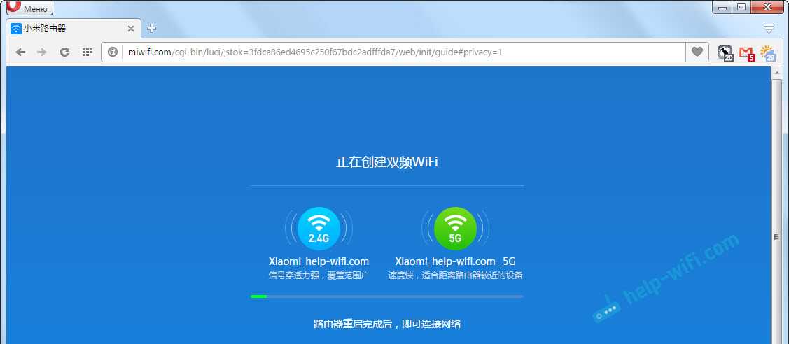 Видим сообщение о том, что роутер создаст две Wi-Fi сети на разных частотах, там будут указаны их названия. Роутер будет перезагружен.