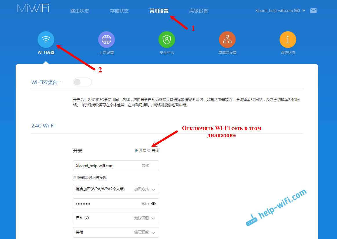 Если вы захотите сменить название Wi-Fi сети, пароль, канал, или например отключить сеть на какой-то частоте 5 GHz, или 2.4 GHz, то зайдите в настройки, и перейдите на станицу как показано ниже.
