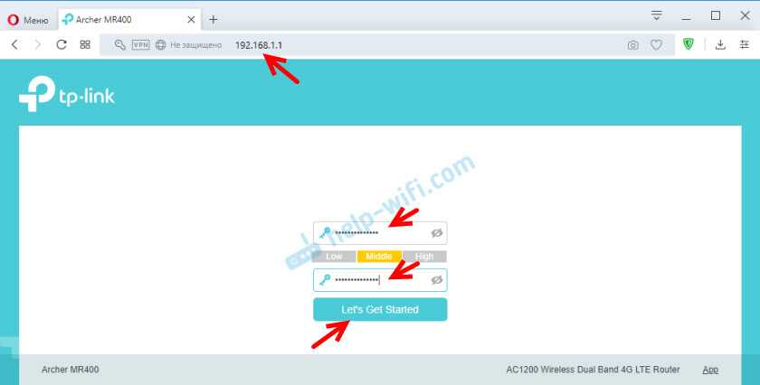 Через браузер в настройки зайти можно по адресу tplinkmodem.net, или 192.168.1.1. При первом входе в веб-интерфейс роутер попросит вас установить пароль администратора, который будет защищать настройки роутера. Нужно придумать и указать пароль (2 раза). Обязательно запишите его где-то.