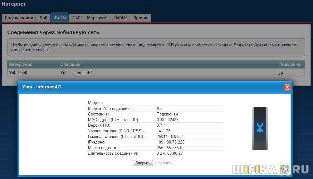 Роутер Keenetic поддерживает большое количество моделей USB-модемов. В случае с модемом Yota настраивать подключение не нужно. Достаточно просто вставить устройство в USB-порт.