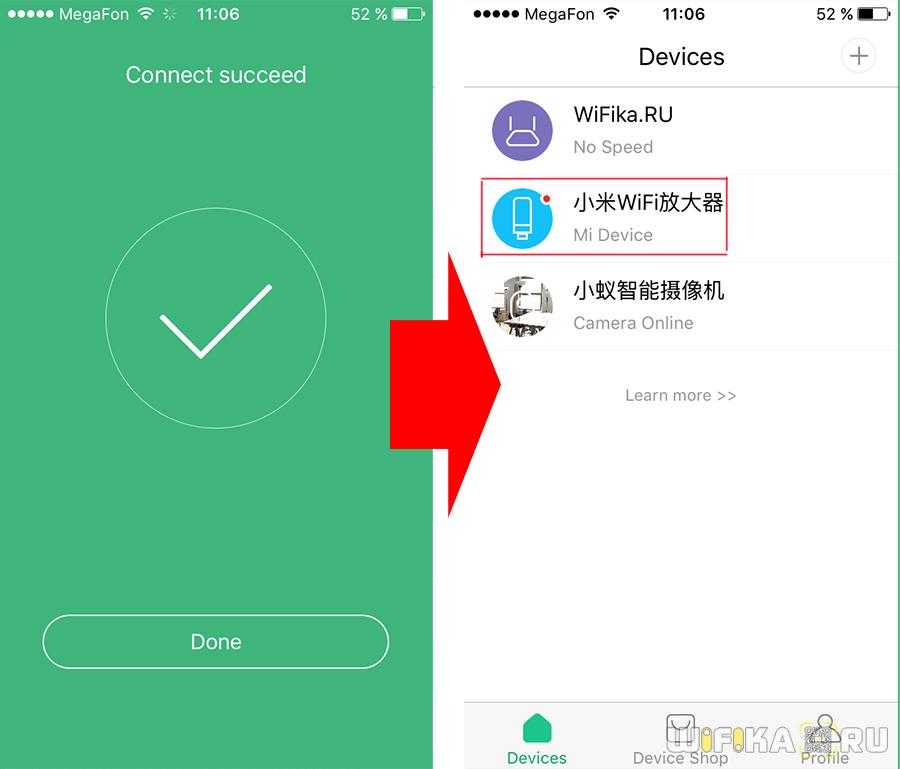 После успешного завершения процедуры повторитель появится в списке, и сеть от роутера будет расширена.