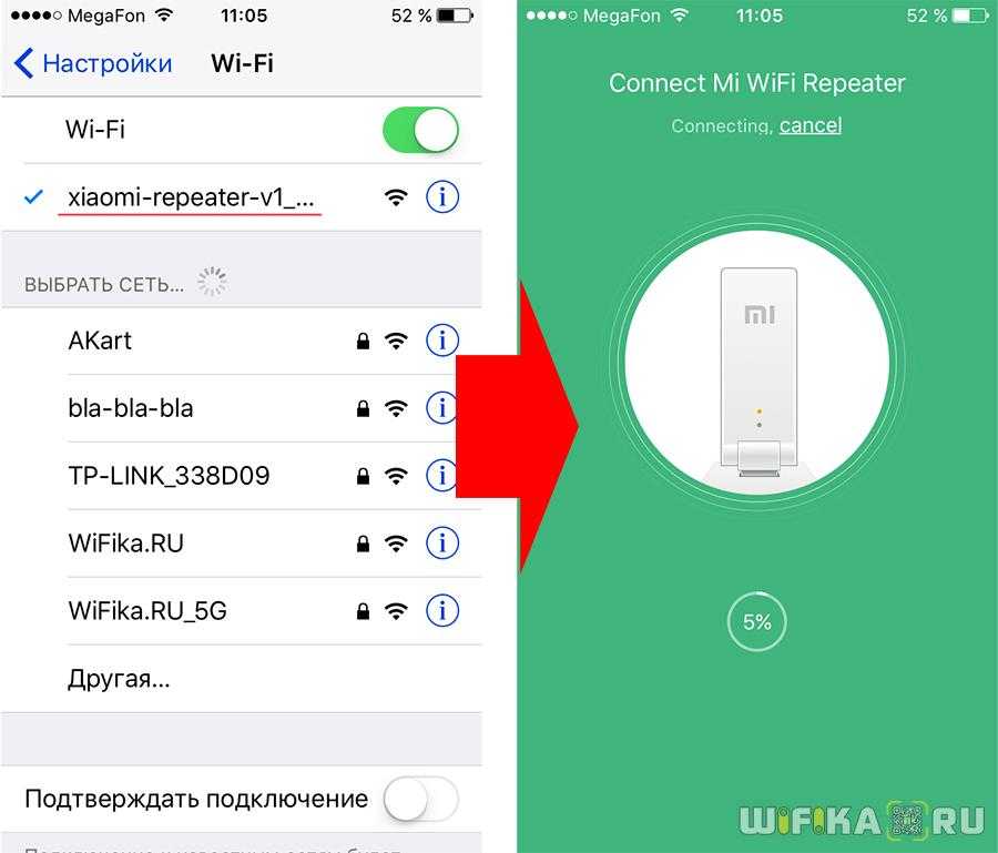 - Подключиться к появившейся открытой сети, содержащей в названии «xiaomi repeater», с телефона, ПК или ноутбука.