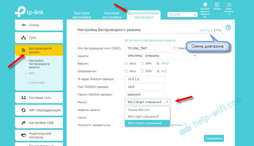 Смена режима Wi-Fi (mode) на роутере TP-Link