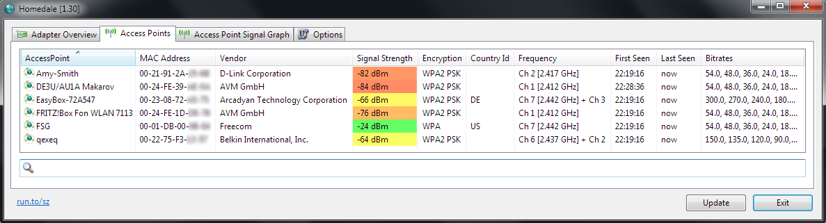 - Запустите приложение. Вы увидите список сетей, уровень их сигнала и техническую информацию, например какие каналы они используют.