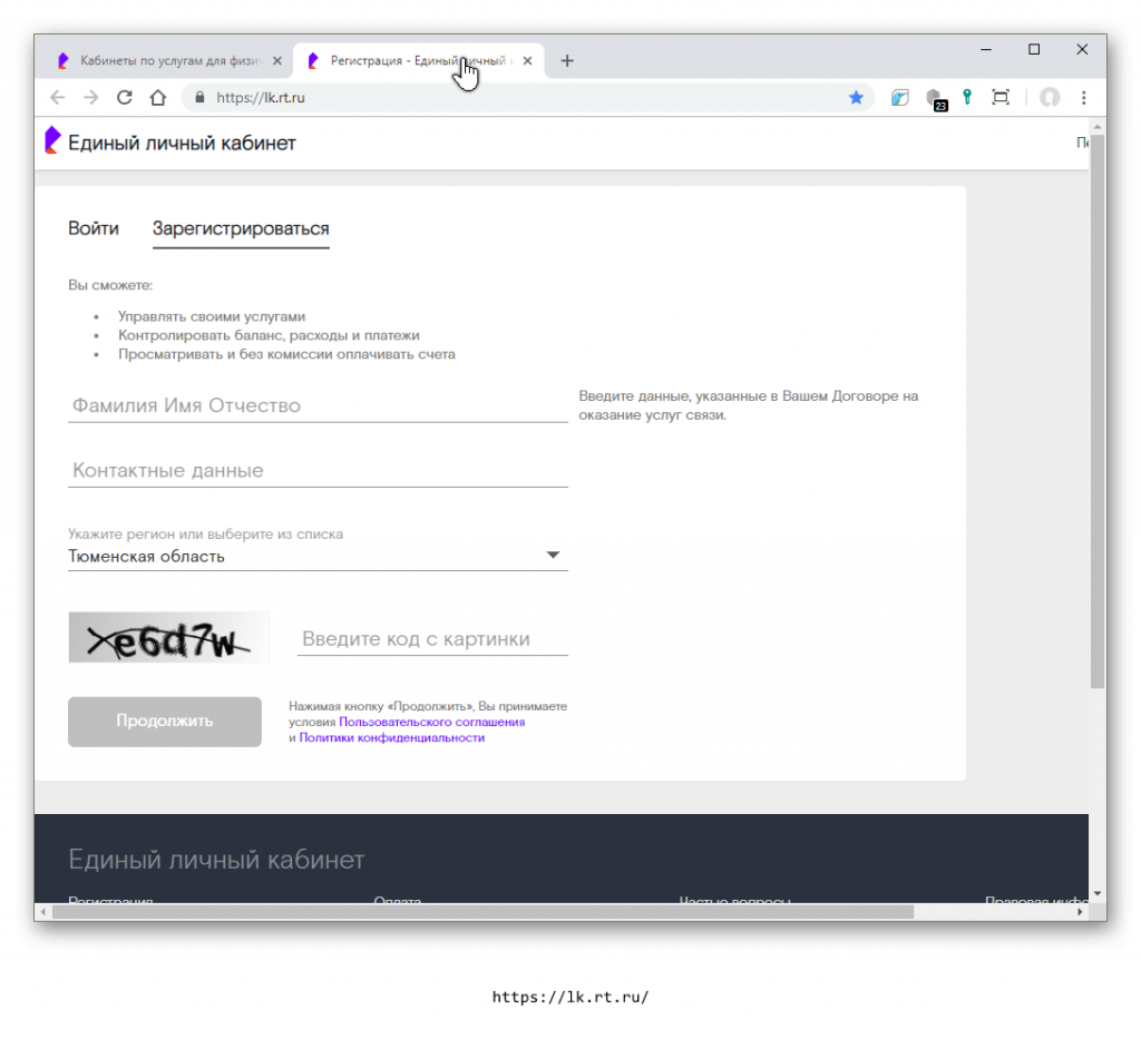 Ссылка на вход в личный кабинет: https://lk.rt.ru.