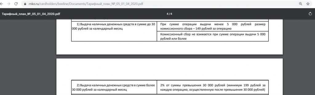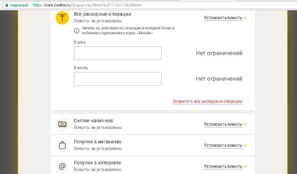Снятие наличных с дебетовой карты «Билайн»