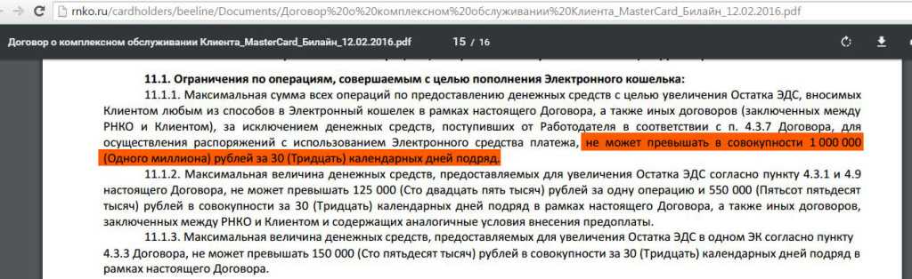 5 Есть общий лимит пополнения всех карт РНКО — 1000000 руб. за тридцать календарных дней (т.е. если у вас есть и карта «Кукуруза», и карта Kari, и Carbon, то у них общий лимит на пополнение):