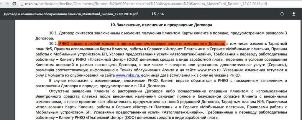 7 РНКО может менять любые тарифы в одностороннем порядке, если что-то не нравится, то возможно только расторгнуть договор: