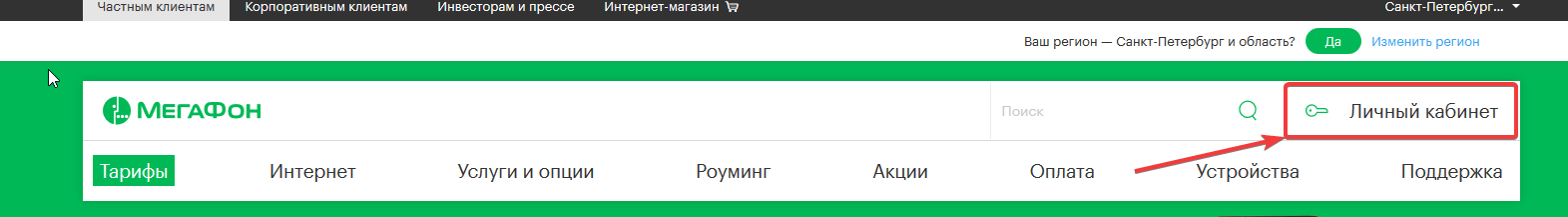 - Войдите на страницу личного кабинета lk.megafon.ru