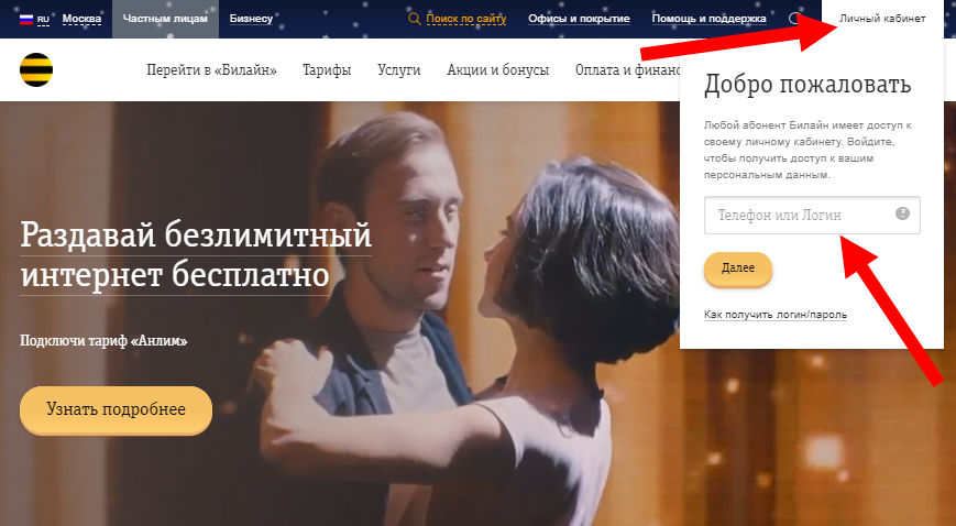 - Погасить задолженность на официальном портале компании Билайн или в личном кабинете пользователя.