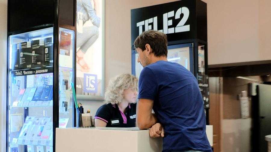 Посетитель у стойки мобильного оператора Tele2
