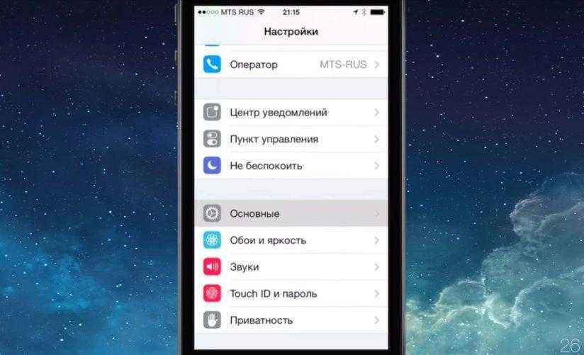 - в меню «Настройки» открыть пункт «Основные», где выбрать «Обновление ПО»;