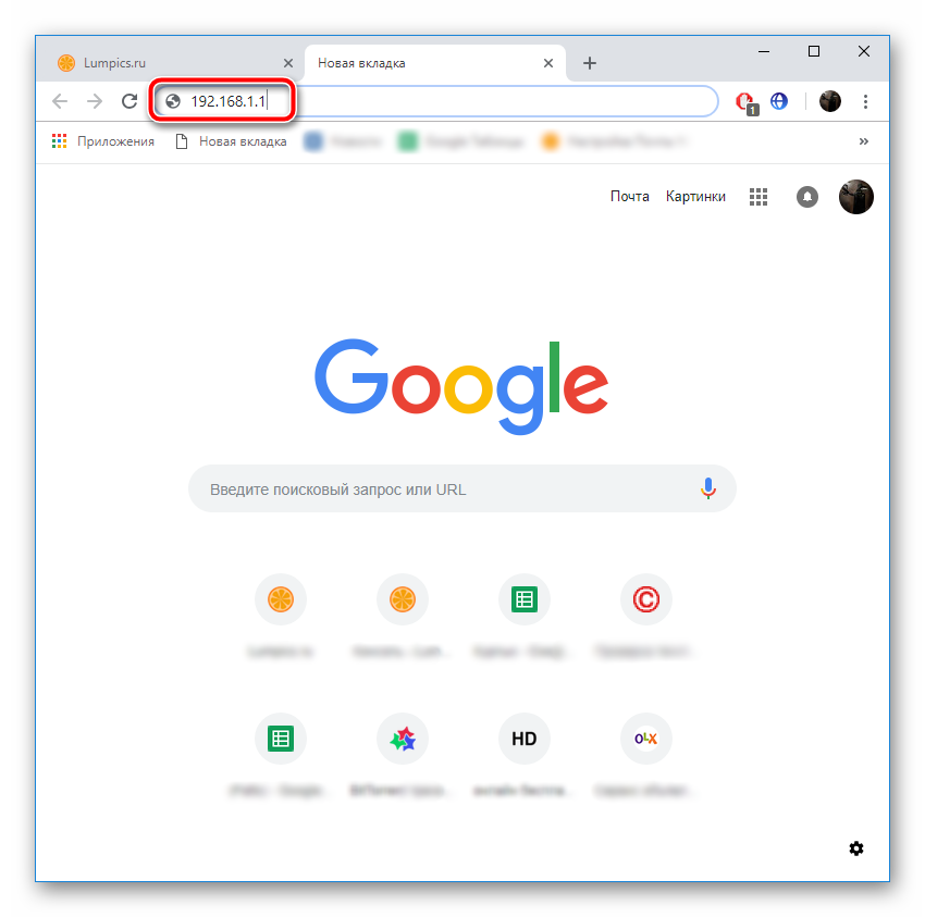 - Откройте любой удобный браузер и через строку перейдите по адресу 192.168.1.1 .