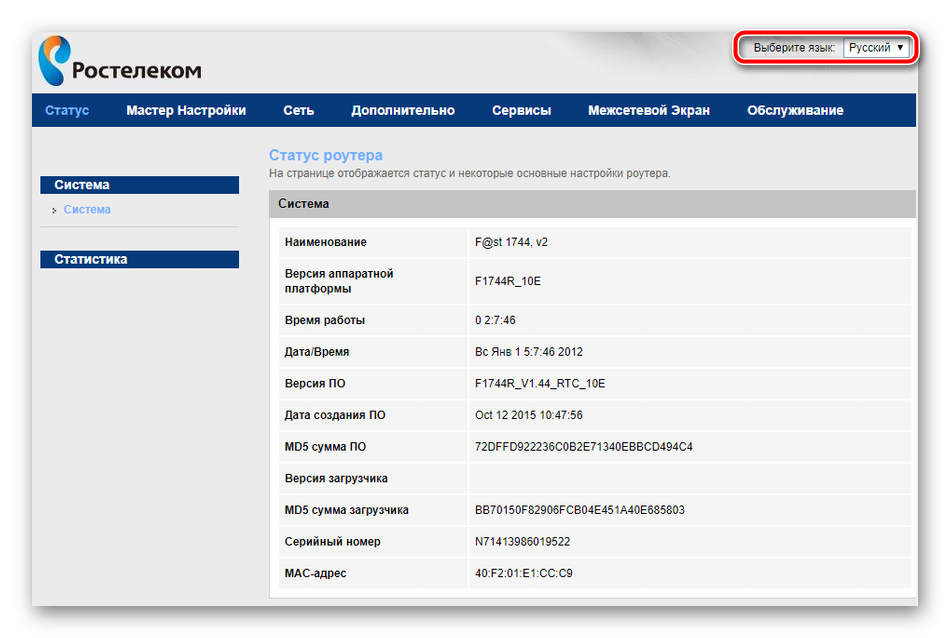 У провайдера присутствует несколько моделей и модификаций оборудования, на данный момент одной из актуальных является Sagemcom F@st 1744 v4, поэтому мы и возьмем за пример это устройство. Обладателям других роутеров просто нужно отыскать в конфигурации такие же настройки и задать соответствующие параметры.