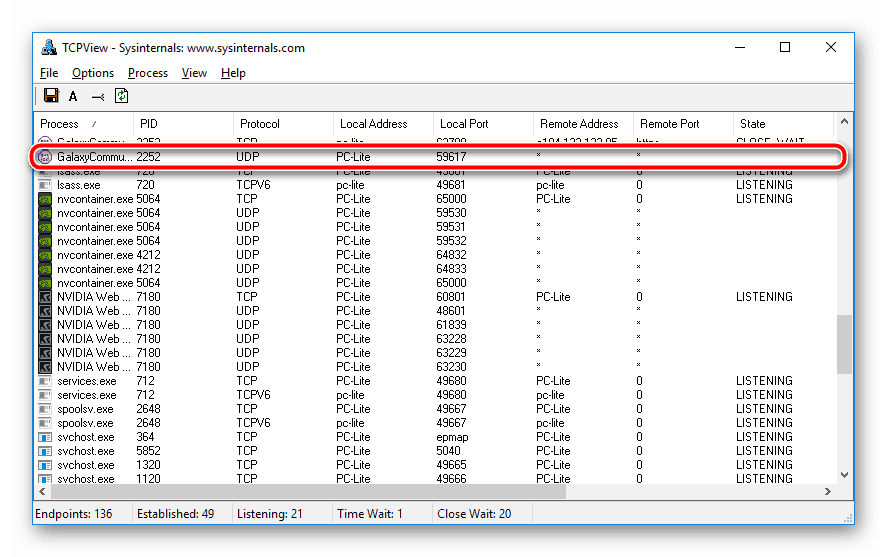 Перед вами появится список установленного на вашем компьютере софта со всей необходимой информацией. Найдите свое приложение и узнайте число из столбца «Remote port».
