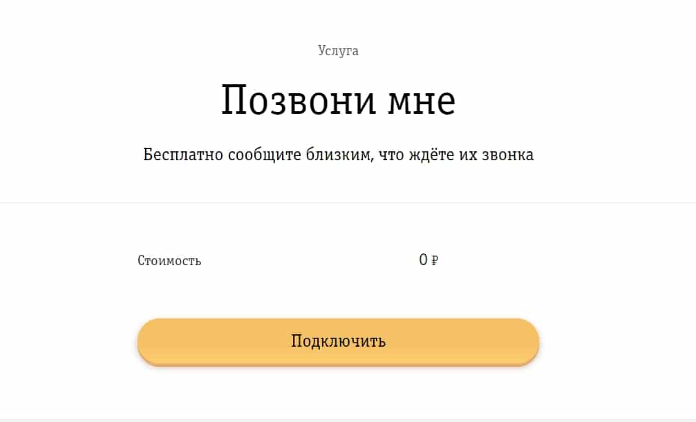 Услуга включена в базовые опции тарифного плана. Ее не нужно отдельно подключать и оплачивать. Она совершенно бесплатна. Воспользовавшись командой, вы отправляете небольшое сообщение, где будет указан номер телефона, и просьба перезвонить.