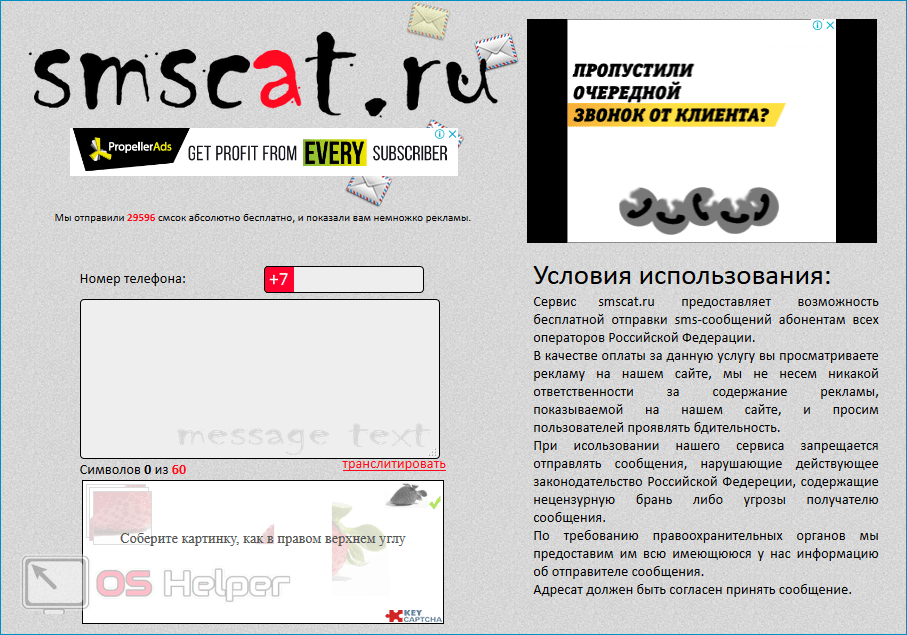 SMSCat – это самый простой сервис из списка. Алгоритм работы максимально прост: