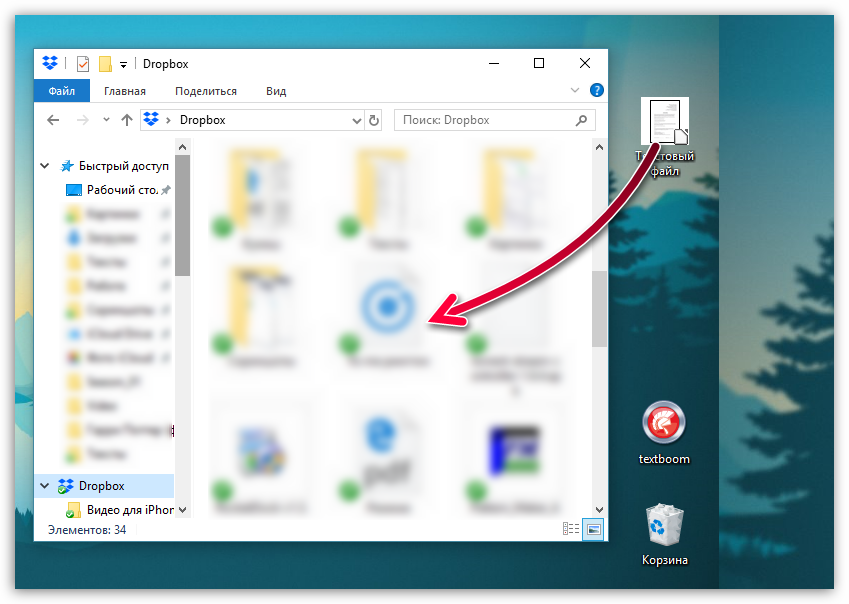 - Откройте на компьютере папку «Dropbox» и перенесите в нее данные.