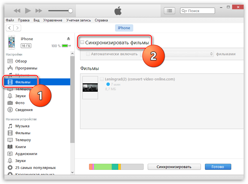 iTunes – еще одна интересная программа, разработанная компанией Apple для того, чтобы пользователи могли воспроизводить на ПК ту музыку, фильмы и прочие данные, которые находятся на iPhone. В отличие от уже упомянутой iClod, данная утилита не требует подключения к интернету, а передача файлов осуществляется напрямую, без облачного хранилища в виде «посредника». Однако перед тем, как приступить к передаче данных, необходимо синхронизировать iTunes с мобильным устройством: