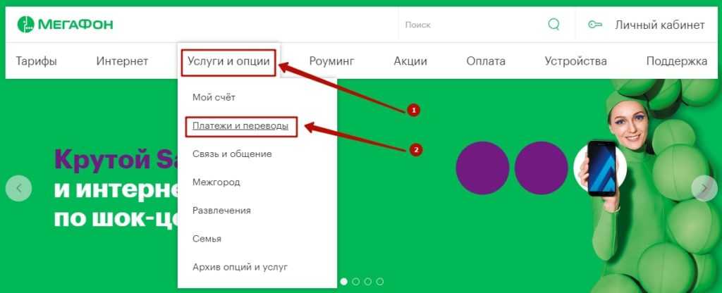 Использование личного кабинета дает больше возможностей, чем другие способы. Но при этом платеж на чужую сим-карту невозможен. Личный кабинет позволяет сделать перечисление на карту Сбербанка. Для этого: