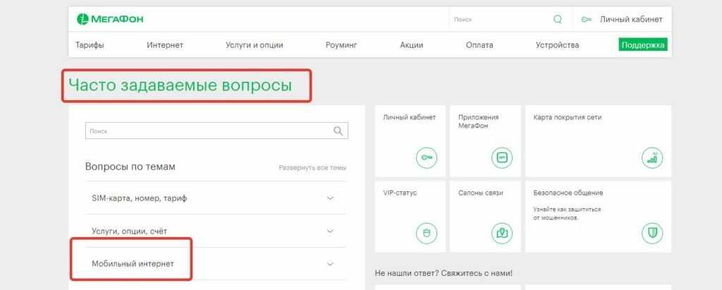 В разделе «Поддержка/Часто-задаваемые вопросы» на сайте Мегафона размещены все основные настройки интернета.