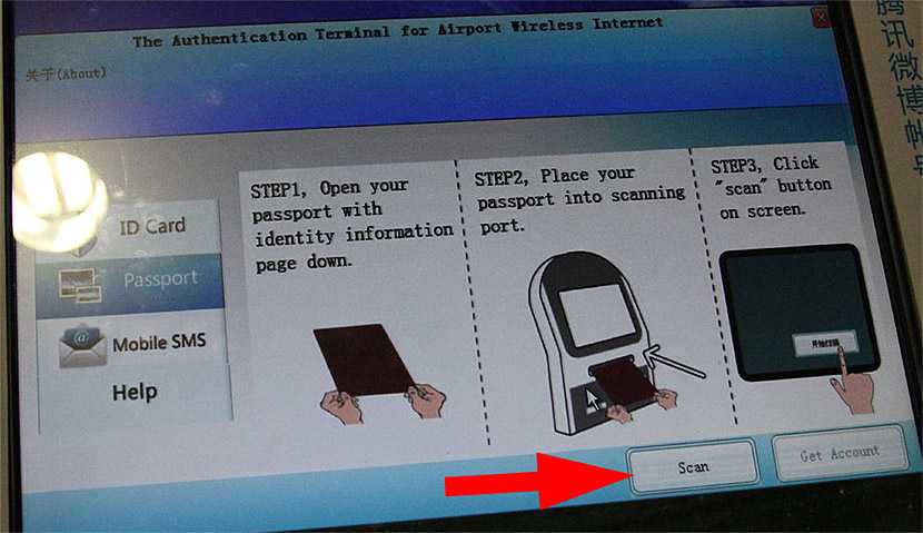 6. Придерживая паспорт, нажимаем на кнопку Scan.