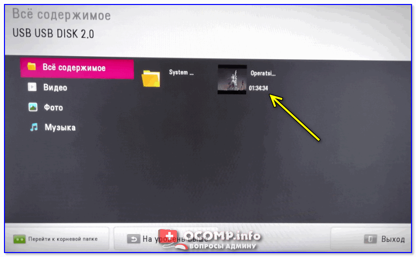 Выбираем нужный файл с накопителя / Меню ТВ