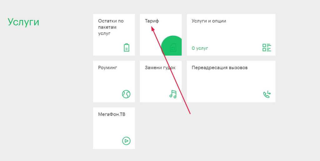 На главной странице Личного кабинета следует найти раздел «Услуги», а уже в нем кликнуть на пункт «Тариф».