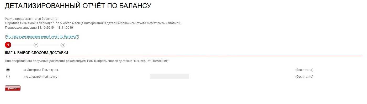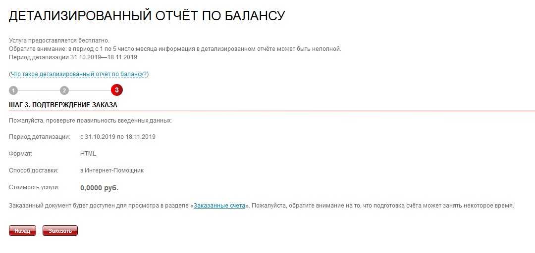 * Заказ возможен не чаще одного раза в сутки. В период с 1 по 5 число месяца информация в детализированном отчёте может быть неполной.