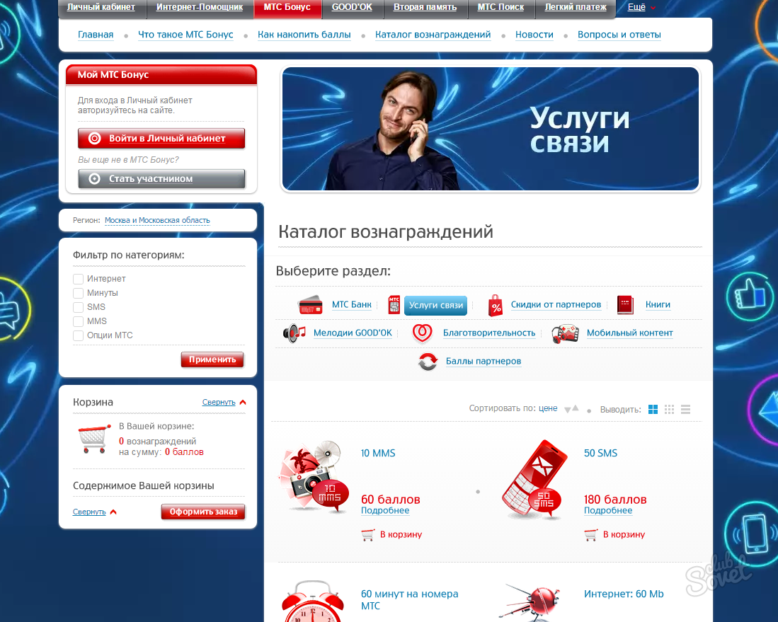 Личный кабинет МТС бонус