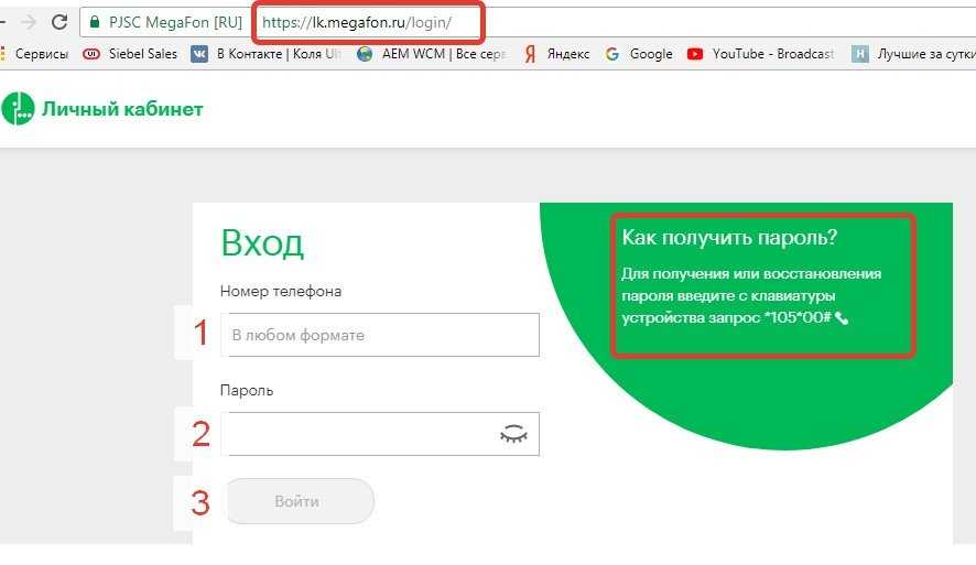- открыть интернет браузер и набрать lk.megafon.ru;