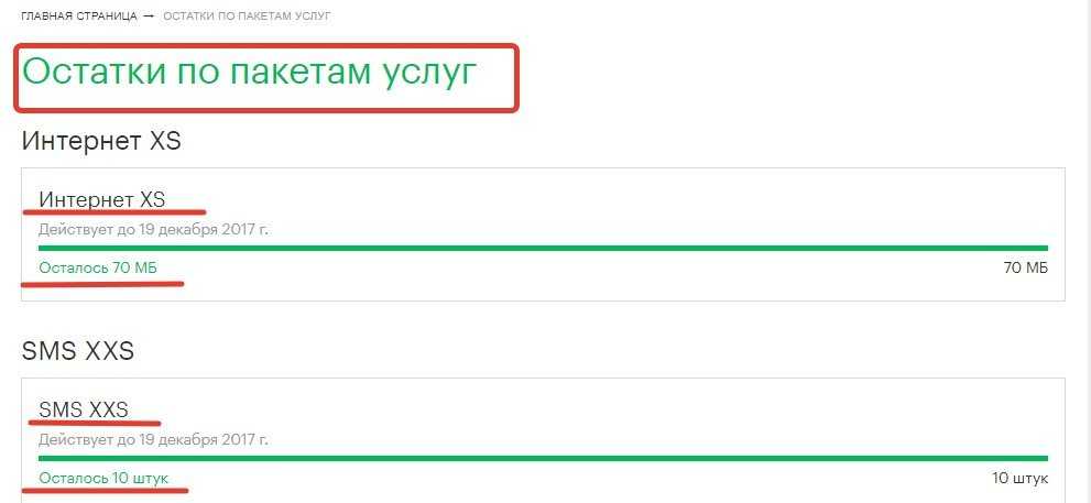 На своей личной странице найдите вкладку «Остатки по пакетам услуг». В ней вы увидите данные по:
