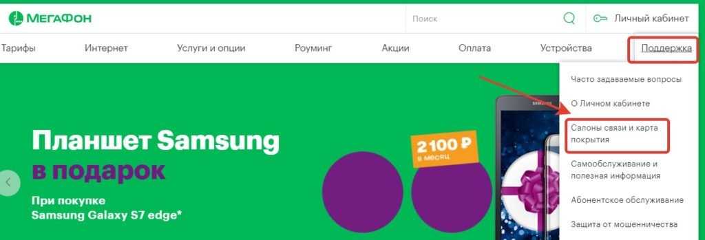 На сайте Мегафона размещена карта расположения отделений оператора связи.
