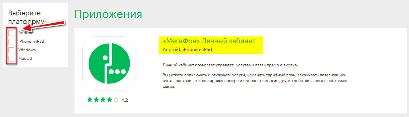 Для того, чтобы пользоваться мобильной версией личной страницы, нужно скачать и запустить приложение «МегаФон». Регистрация в приложении та же, что и на сайте компании для входа в свой кабинет. То есть, нужен телефон и пароль.