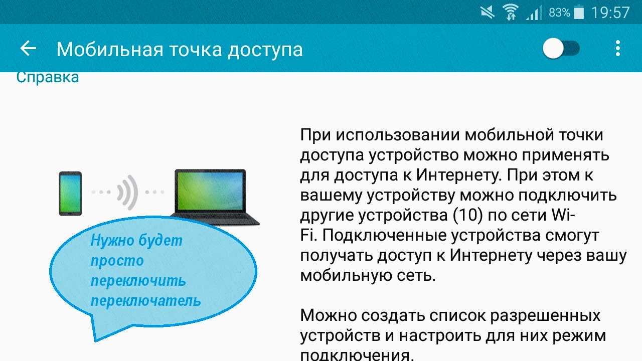 Когда он включен, компьютер или ноутбук распознает телефон как мобильный модем, через который он будет подключаться к интернету.