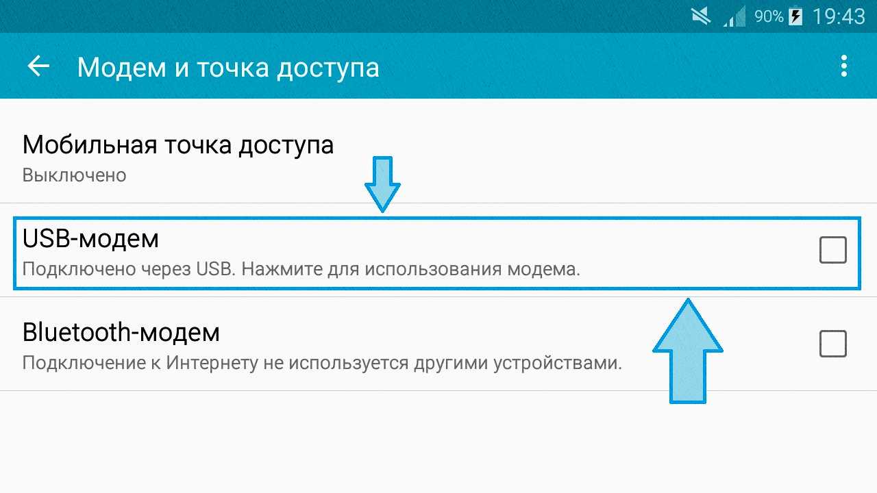 Третий вариант — подключить телефон к компьютеру через USB-кабель. На самсунге а50 рядом с «Bluetooth-модемом» находится также «USB-модемом».
