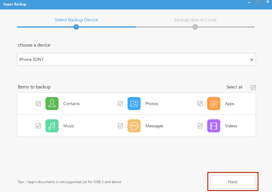 Шаг 4. В следующем окне определите, какие данные вы хотели бы видеть в резервной копии.