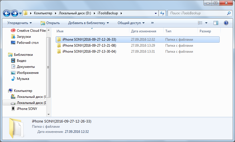 Всё! После этого, резервные копии iTunes будут храниться по адресу D:\iTunes\Backup\