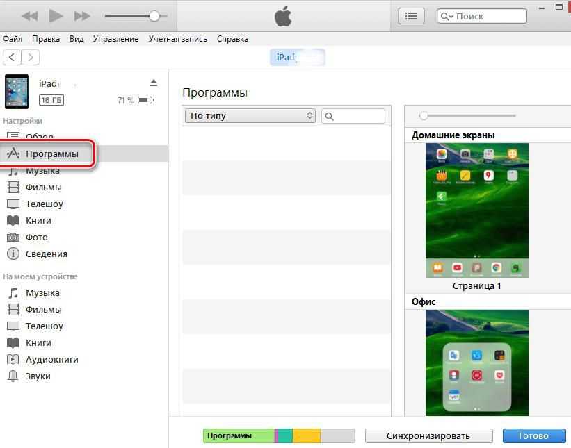 - Включите и настройте синхронизацию программ, музыки, фильмов, фотографий и звуков на соответствующих вкладках.