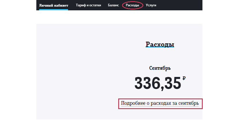 Здесь будет представлен полный перечень финансовых операций для текущего номера. Отчётность можно просматривать за любой период в рамках 6 месяцев. При желании, можно заказать распечатку расходов в формате XLS либо PDF, которая будет отправлена на электронную почту.