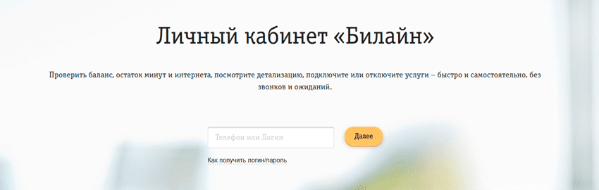 Как войти в личный кабинет Билайн (основной способ)