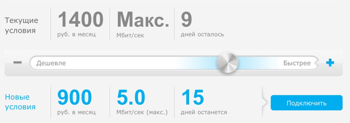 Обратите внимание, что изменение скорости интернета повлечет за собой увеличение или уменьшение размера оплаты (в зависимости от того, в какую сторону Вы изменяете скорость подключения). Функция управления скоростью дает возможность удобно пользоваться интернетом на максимальной скорости либо вообще отключать его, исходя из Ваших потребностей в настоящий момент