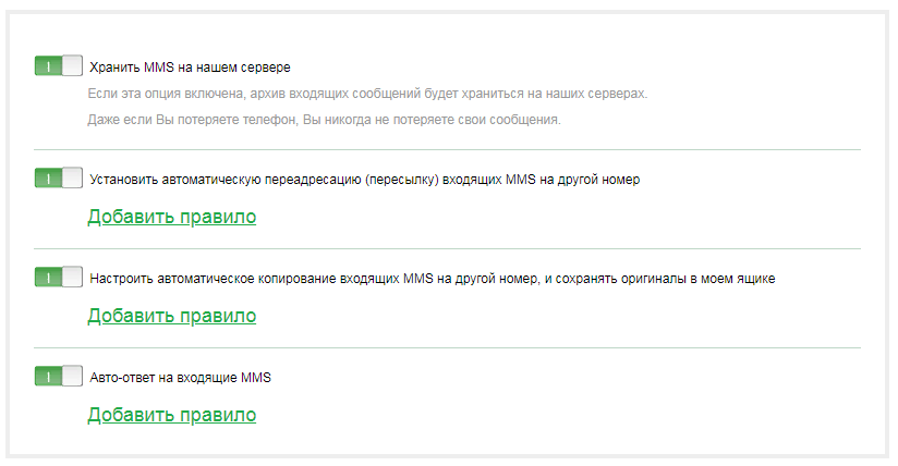 - Активировать или отключить автоматическое сохранение входящих ММС. Они будут неограниченно храниться на сервере, даже если потеряете устройство.