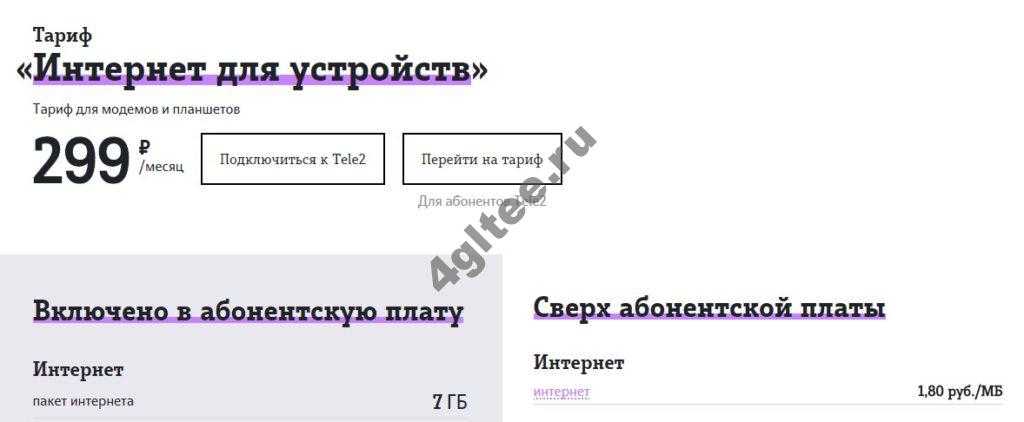 Тарифы Теле 2 на безлимитный 4g интернет для модема и роутера объединены в один Называется он «Интернет для устройств» и в базовой своей комплектации имеет достаточно скромные свойства.