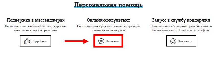 Чтобы пообщаться с консультантом в режиме реального времени найдите заголовок «Персональная помощь» и выберите вариант «Написать онлайн-консультанту». О том, как позвонить в Теле2 оператору с мобильного вы можете прочитать тут.