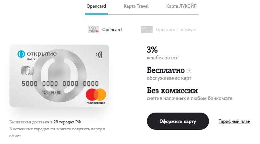 - Три карты на выбор – Opencard, Travel, ЛУКОЙЛ.