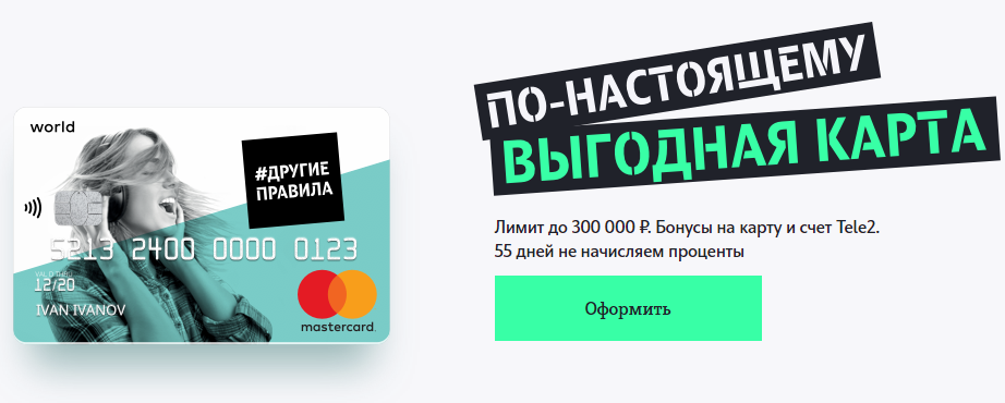 В случае отрицательного решения, мы рекомендуем присмотреться к кредитную или дебетовую карту от Tele2 и Home Credit Bank на привлекательных условиях и с множеством отличных бонусов абонентам.