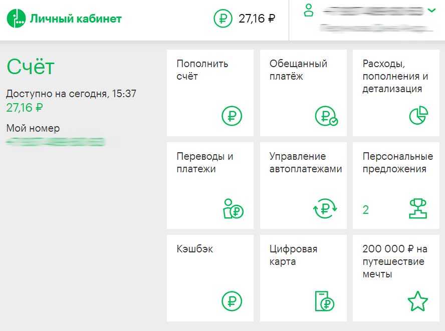 Сразу развенчаем миф, что сервис самообслуживания неудобен для использования. Новый ЛК прост и интуитивно понятен по сравнению со старым Личным кабинетом Мегафона. Вся самая важная информация, как то: абонентский номер, состояние баланса, остатки по подключенным пакетам размещена сразу на главной странице.