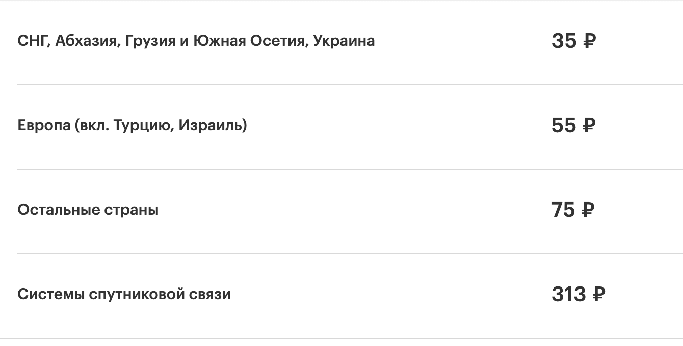 - ММС по СНГ – 10 руб.