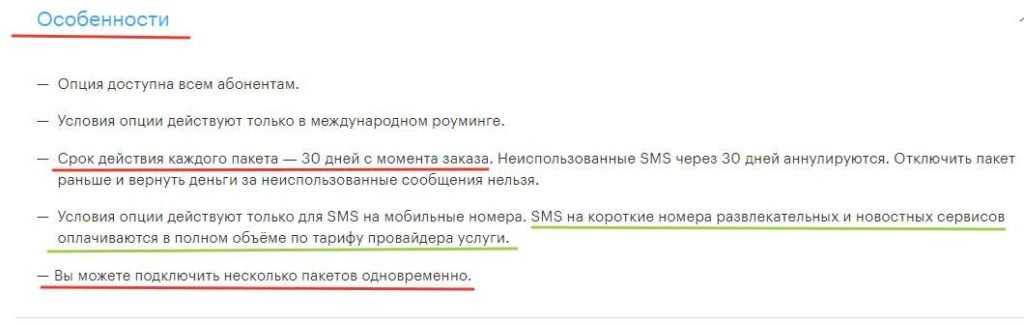 Особенности предоставления пакетов sms, размещенные на сайте Мегафона.
